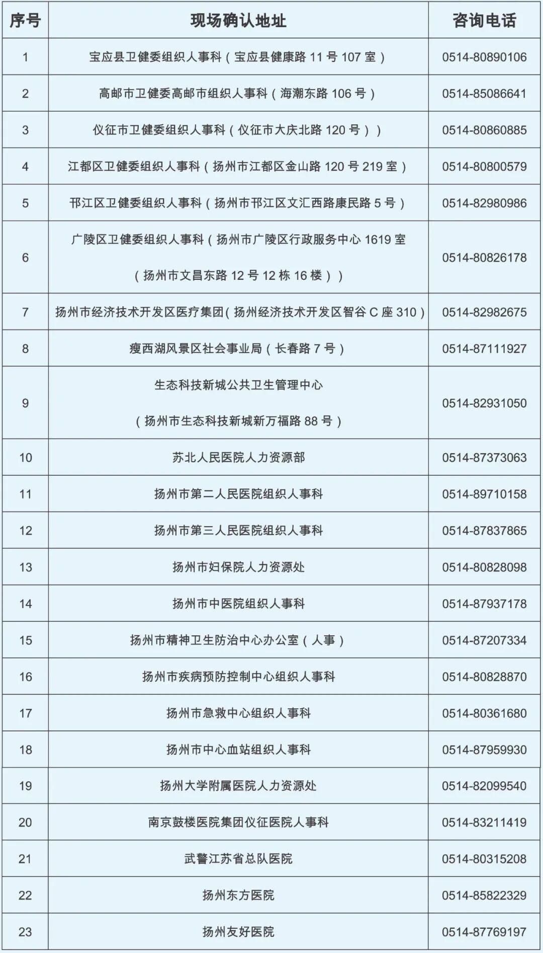 市直單位、駐揚單位的考生在考生所在單位人事部門進行現(xiàn)場確認,其他單位的考生在單位所在轄區(qū)報名點進行現(xiàn)場確認。