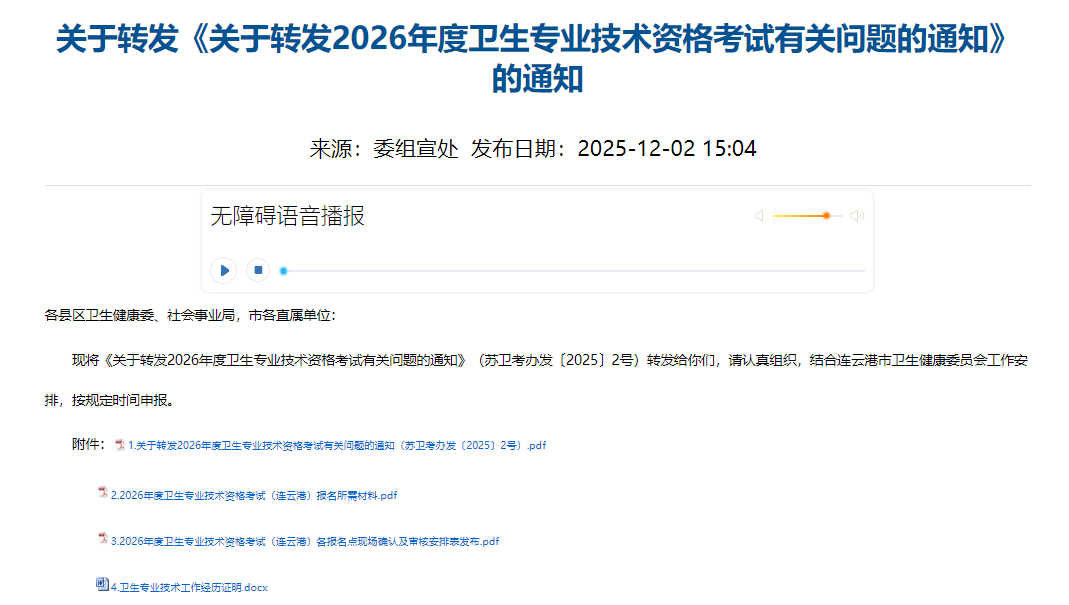 連云港2026年衛(wèi)生專業(yè)技術(shù)資格考試報(bào)名通知