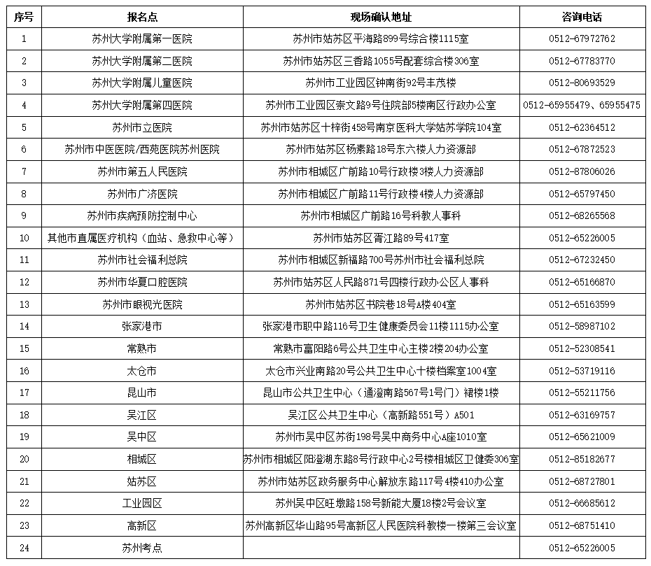 五、各報(bào)名點(diǎn)現(xiàn)場(chǎng)確認(rèn)地址及咨詢電話