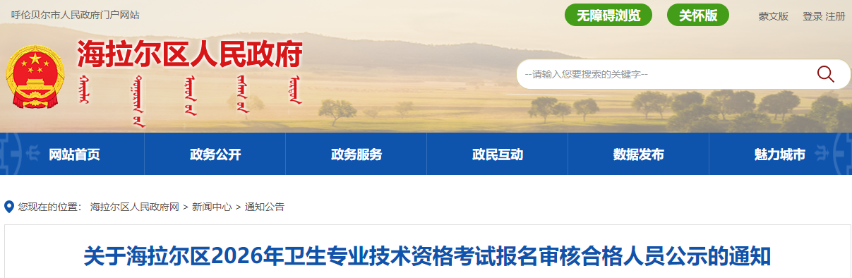 關(guān)于海拉爾區(qū)2026年衛(wèi)生專業(yè)技術(shù)資格考試報(bào)名審核合格人員公示的通知