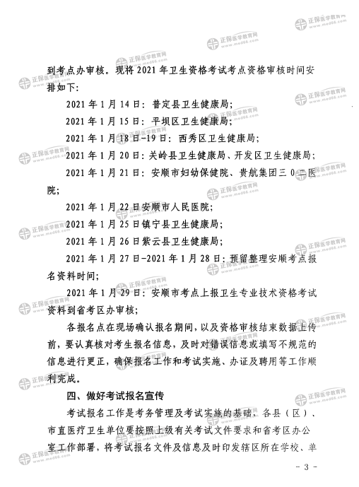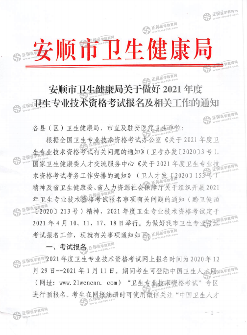 安順市衛(wèi)生健康局發(fā)布關(guān)于做好2021年度衛(wèi)生專業(yè)技術(shù)資格考試報名及相關(guān)工作的通知,醫(yī)學教育網(wǎng)整理具體內(nèi)容如下: