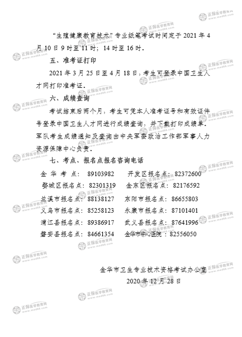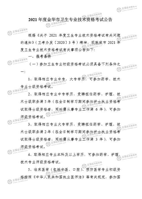 2021年金華市衛(wèi)生專業(yè)技術(shù)資格考試公告