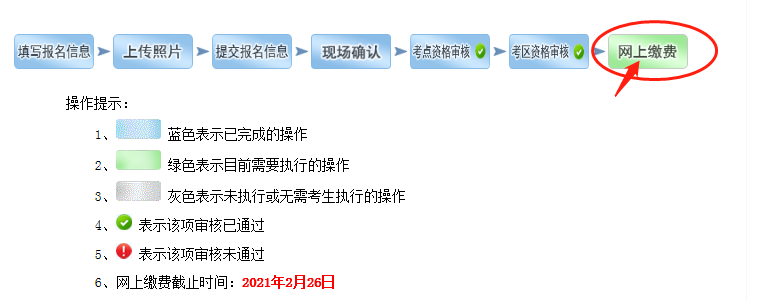 即日起至2月26日,報名參加“2021年衛(wèi)生專業(yè)技術(shù)資格考試”并通過審核的考生,可登錄中國衛(wèi)生人才網(wǎng)(http://www.21wecan.com/),點(diǎn)擊進(jìn)入“網(wǎng)上報名”,進(jìn)行網(wǎng)上繳納考試費(fèi),如下: