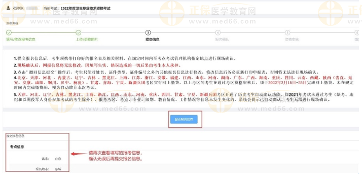 上傳照片后系統(tǒng)將跳轉(zhuǎn)至【提交報名信息】頁,也可點擊【報考流程】處的“提交信息”節(jié)點,確認(rèn)無誤后點擊“提交報名信息”。