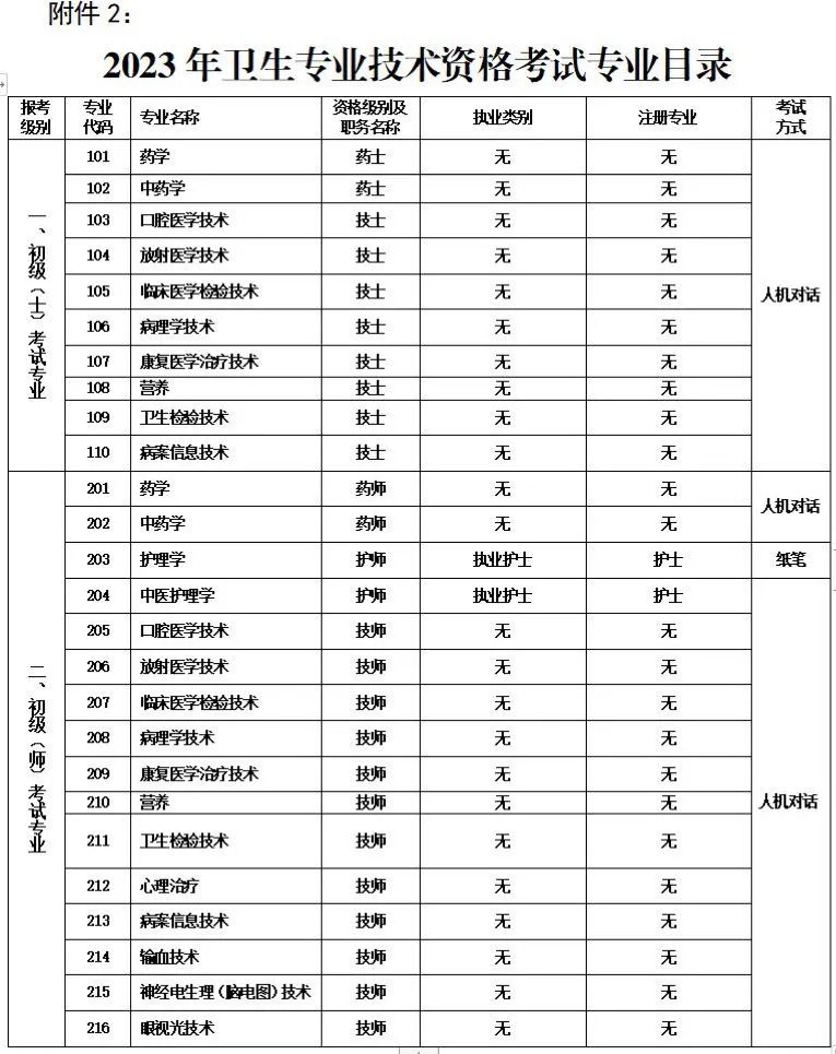 2.2023年衛(wèi)生專業(yè)技術(shù)資格考試專業(yè)目錄
