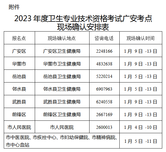 2023年衛(wèi)生專業(yè)技術(shù)資格考試廣安考點(diǎn)公告