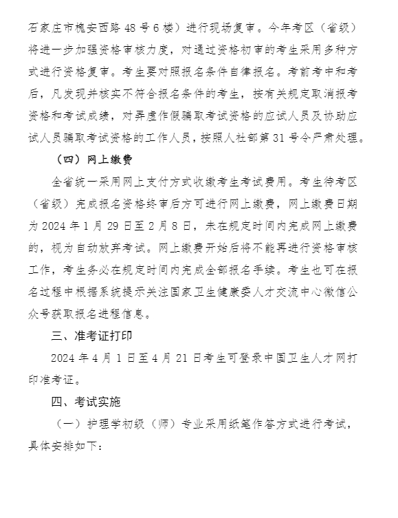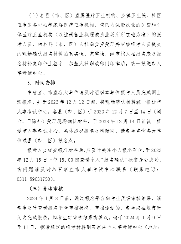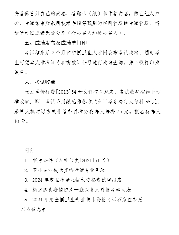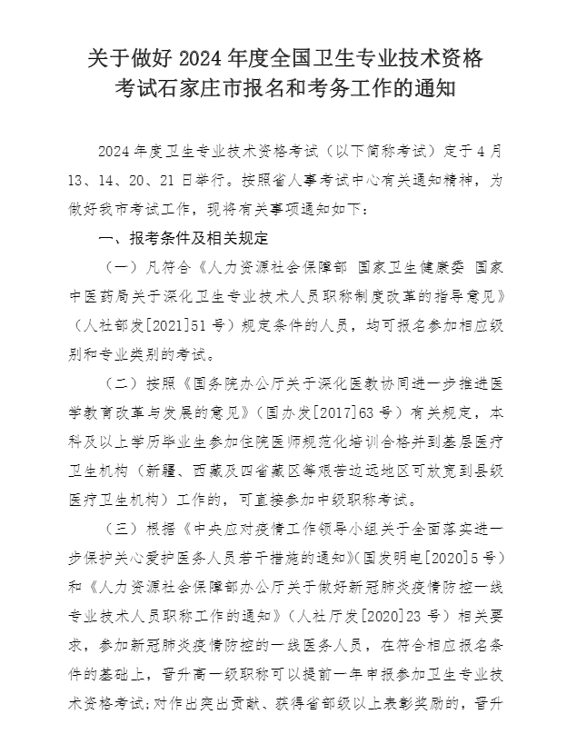 關(guān)于做好2024年度全國衛(wèi)生專業(yè)技術(shù)資格考試石家莊市報名和考務(wù)工作的通知