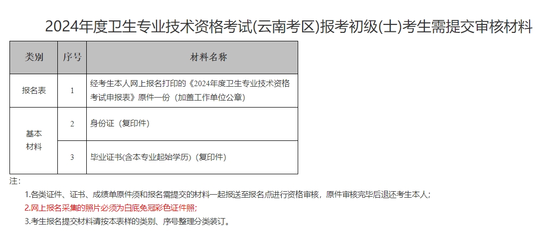 2.2024年度衛(wèi)生專業(yè)技術(shù)資格考試報名需提交材料目錄