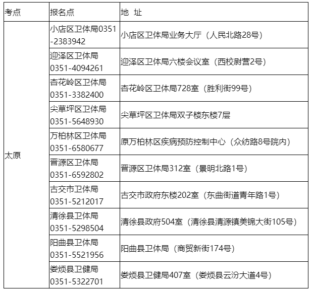 (一)太原考點(diǎn):太原市衛(wèi)生健康委員會(太原市住房公積金管理中心萬柏林分理處303室)