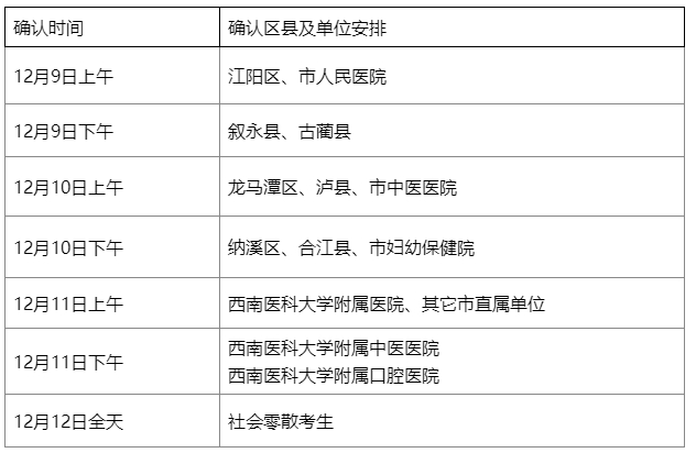 集中現(xiàn)場確認時間:2023年12月9日-12日(具體安排見下表),請各單位嚴格按照時間要求安排人員按時完成現(xiàn)場確認工作。