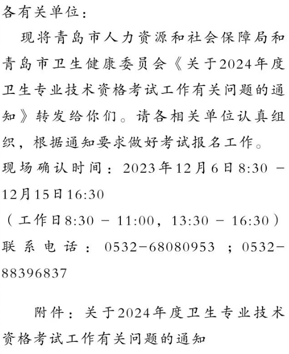 平度市2024年衛(wèi)生專業(yè)技術資格考試工作有關問題的通知