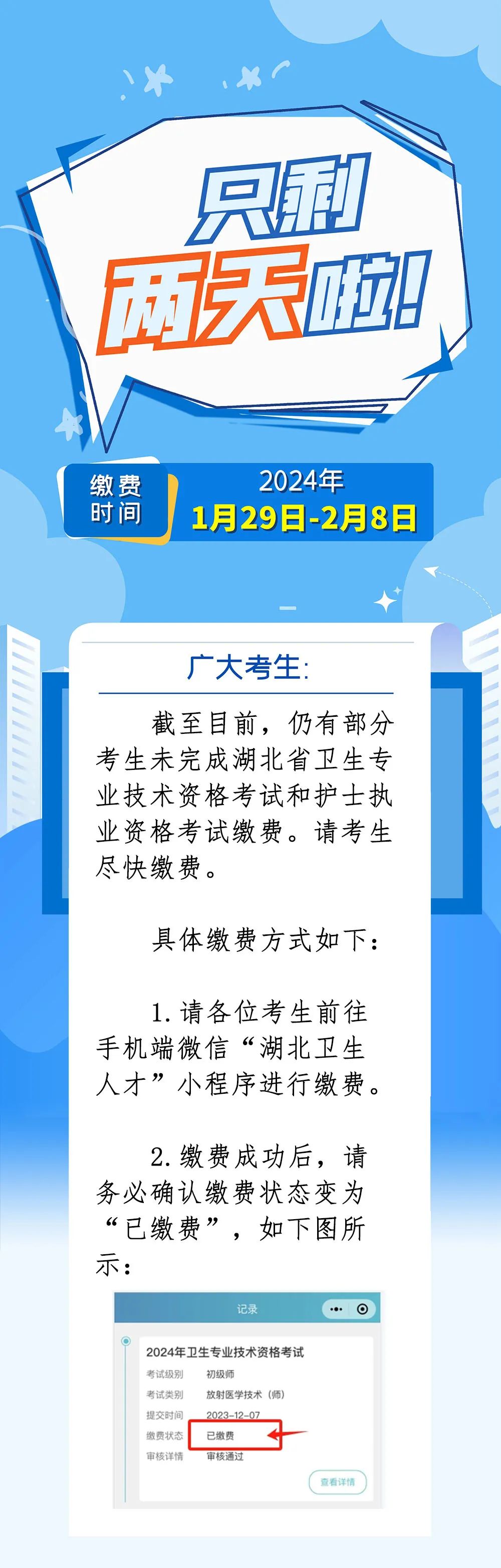 2024年度湖北省衛(wèi)生專(zhuān)業(yè)技術(shù)資格考試?yán)U費(fèi)提醒