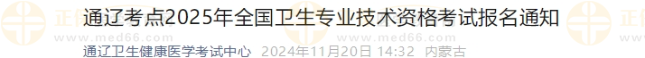 通遼考點(diǎn)2025年全國衛(wèi)生專業(yè)技術(shù)資格考試報(bào)名通知