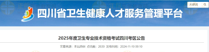 2025年度衛(wèi)生專業(yè)技術資格考試四川考區(qū)公告公布啦!醫(yī)學教育網(wǎng)整理具體內容如下: