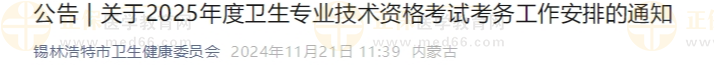 錫林浩特2025年衛(wèi)生專業(yè)技術(shù)資格考試考務(wù)工作安排的通知