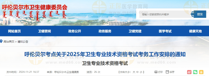 呼倫貝爾2025年衛(wèi)生專業(yè)技術(shù)資格考試考務(wù)工作安排的通知