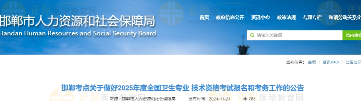 邯鄲2025年衛(wèi)生專業(yè)技術(shù)資格考試報名和考務(wù)工作的公告