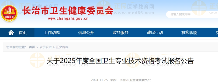 長治市關(guān)于2025年度全國衛(wèi)生專業(yè)技術(shù)資格考試報(bào)名公告