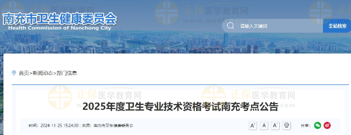 2025年度衛(wèi)生專業(yè)技術(shù)資格考試南充考點(diǎn)公告