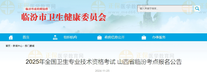 山西省臨汾2025年衛(wèi)生專業(yè)技術(shù)資格考試報(bào)名公告