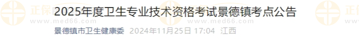 2025年度衛(wèi)生專業(yè)技術(shù)資格考試景德鎮(zhèn)考點(diǎn)公告