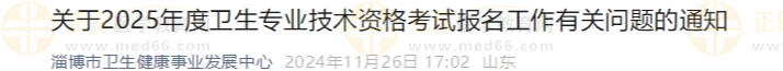 淄博市2025年衛(wèi)生專業(yè)技術(shù)資格考試報(bào)名工作有關(guān)問題的通知