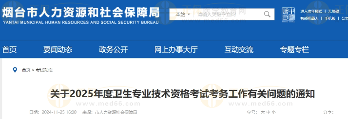 煙臺市2025年衛(wèi)生專業(yè)技術(shù)資格考試考務(wù)工作有關(guān)問題的通知