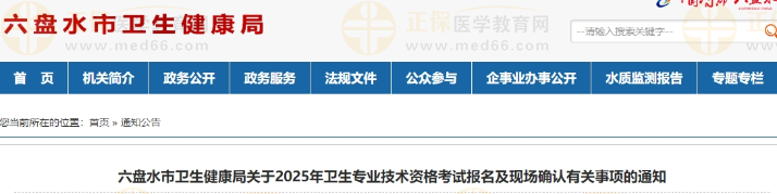 六盤水市2025年衛(wèi)生專業(yè)技術(shù)資格考試報(bào)名及現(xiàn)場(chǎng)確認(rèn)有關(guān)事項(xiàng)的通知