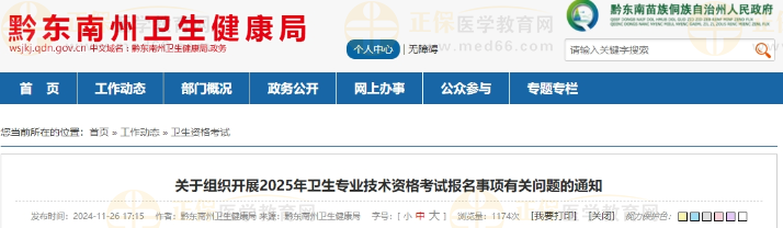 黔東南2025年衛(wèi)生專(zhuān)業(yè)技術(shù)資格考試報(bào)名事項(xiàng)有關(guān)問(wèn)題的通知