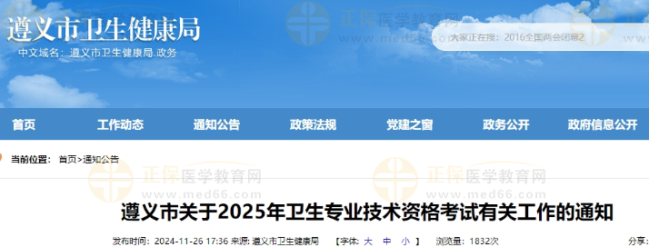遵義市關(guān)于2025年衛(wèi)生專業(yè)技術(shù)資格考試有關(guān)工作的通知