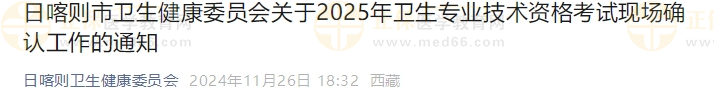 日喀則市2025年衛(wèi)生專業(yè)技術資格考試現(xiàn)場確認工作的?通知