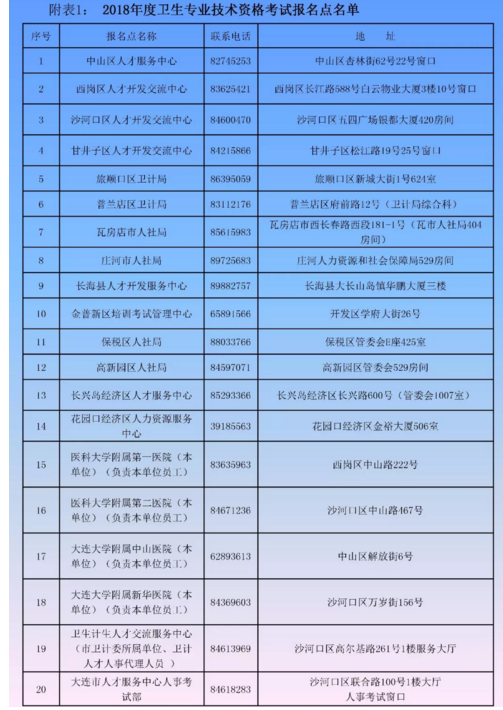 根據(jù)衛(wèi)生專業(yè)技術(shù)資格考試辦公室《關(guān)于2018年度衛(wèi)生專業(yè)技術(shù)資格考試有關(guān)問題的通知》(衛(wèi)考辦發(fā)〔2018〕1號)和大連市人才服務(wù)中心《關(guān)于2018年度衛(wèi)生專業(yè)技術(shù)資格考試報(bào)名的通知》精神,現(xiàn)將本報(bào)名點(diǎn)2018年度衛(wèi)生專業(yè)技術(shù)資格考試報(bào)名事宜通知如下: