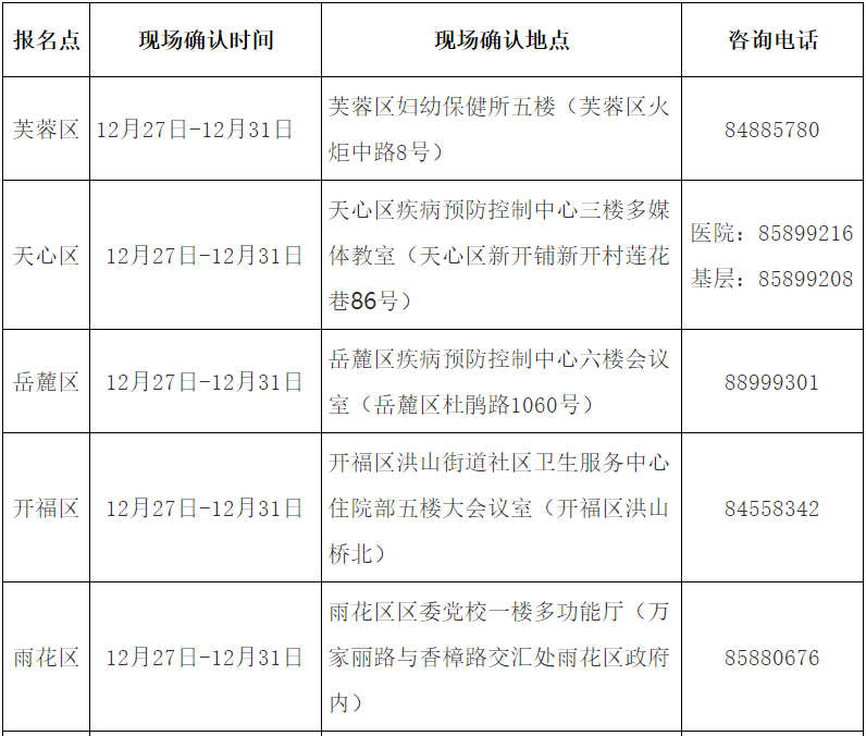 全市各報名點現(xiàn)場確認(rèn)時間為2021年12月27日-12月31日期間,上午09:00-12:00,下午13:00-17:00。具體時間安排由各報名點自行要求。