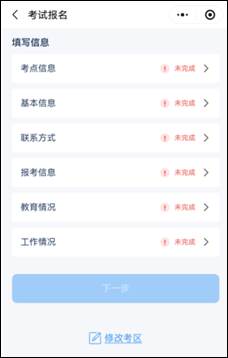 如信息填寫后發(fā)現(xiàn)省份選擇有誤,請在“未提交報名信息”狀態(tài)下,使用【修改考區(qū)】功能進行修改。修改考區(qū)操作將會清空此項目下已經(jīng)填寫的報名信息,不影響注冊信息和基本信息。