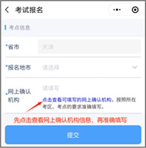 如所在考區(qū)采用線上確認方式進行報名確認,考生還須填寫“網(wǎng)上確認機構”(點擊藍色鏈接查看網(wǎng)上確認機構列表)。