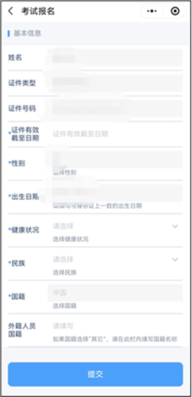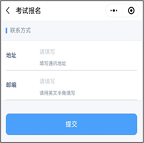 4.按順序填寫報名信息,每項填寫完畢后點擊當頁的“提交”按鈕進入下一頁填寫。