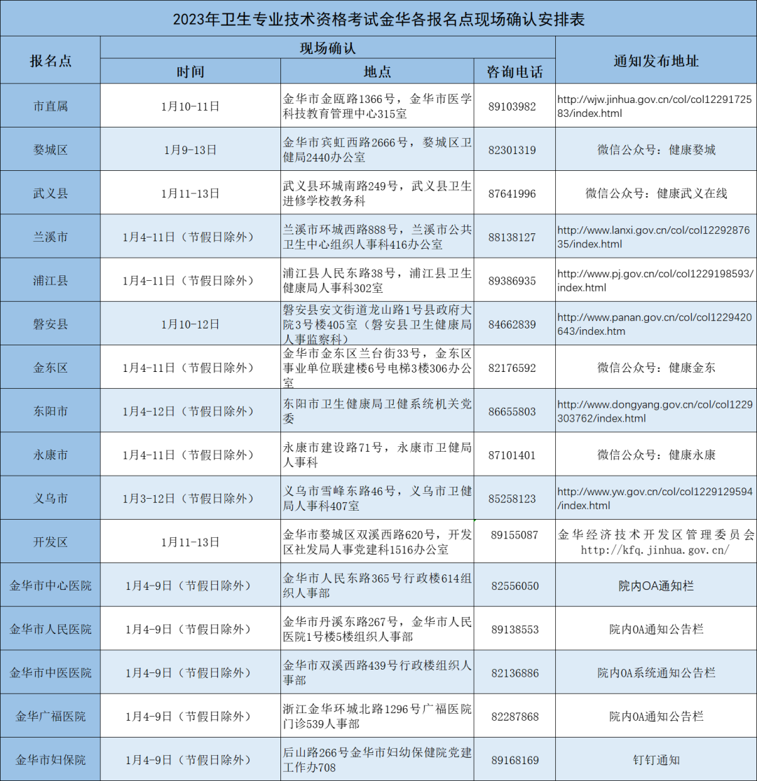 (一)全市衛(wèi)生專業(yè)技術(shù)資格考試實(shí)行屬地化管理。金華市考點(diǎn)辦公室設(shè)在金華市醫(yī)學(xué)科技教育管理中心(以下簡(jiǎn)稱“市醫(yī)學(xué)科教中心”,地址:金華市金甌路1366號(hào)市公共衛(wèi)生中心三樓315室)。金華市直屬、金華市中心醫(yī)院、金華市中醫(yī)醫(yī)院、金華市人民醫(yī)院、金華廣福醫(yī)院、金華市婦保院及各縣(市、區(qū))衛(wèi)健局設(shè)報(bào)名點(diǎn),負(fù)責(zé)報(bào)名材料審核、現(xiàn)場(chǎng)確認(rèn)等工作。