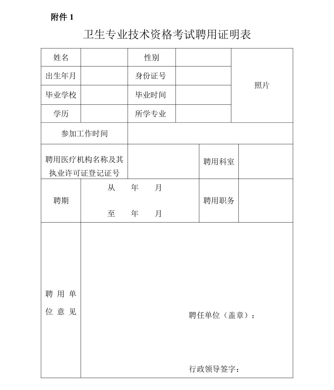 1.衛(wèi)生專業(yè)技術(shù)資格考試聘用證明表