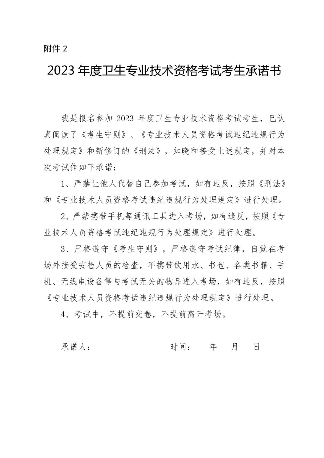 2、2023年度衛(wèi)生專業(yè)技術資格考試考生承諾書