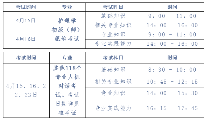 2023年度衛(wèi)生專業(yè)技術(shù)資格考試按考試科目執(zhí)行紙筆考試和人機(jī)對(duì)話兩種考試方式,定于2023年4月舉行。具體安排如下: