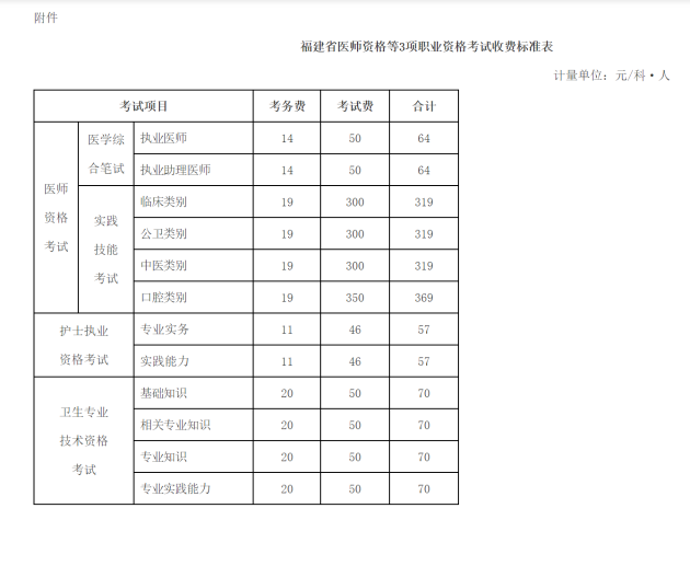 關(guān)于重新制定福建省衛(wèi)生資格考試收費標準的通知