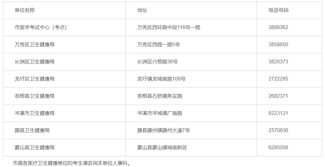 考點(diǎn)及各轄區(qū)報(bào)名點(diǎn)地址與咨詢電話