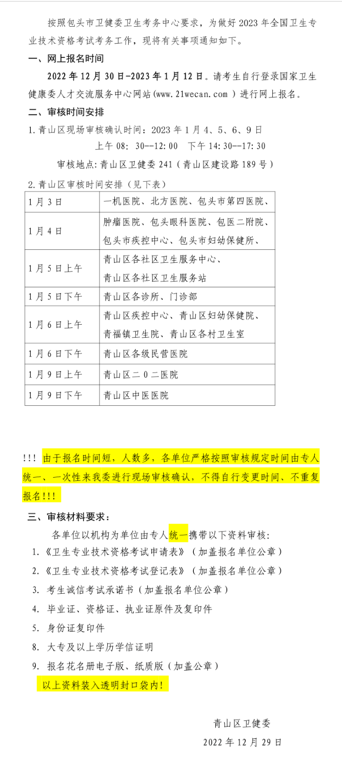 ?包頭市青山區(qū)2023年全國衛(wèi)生專業(yè)技術(shù)資格考試報名審核工作安排