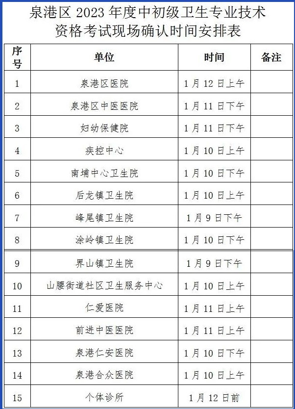 福建泉州泉港區(qū)2023年中初級(jí)衛(wèi)生專業(yè)技術(shù)資格考試報(bào)名開(kāi)始的通知