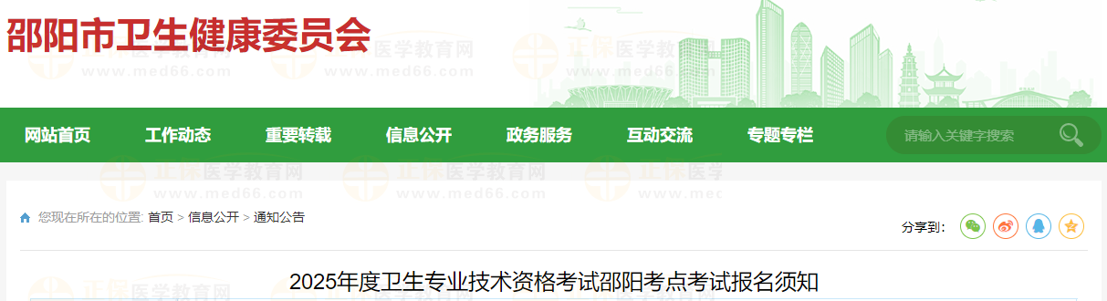 2025年度衛(wèi)生專業(yè)技術資格考試邵陽考點公告公布啦!醫(yī)學教育網整理具體內容如下: