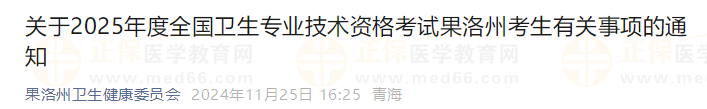 青海果洛州考點2025年度全國衛(wèi)生資格考試報名工作安排的通知