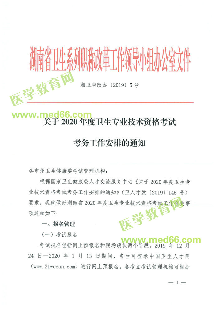湖南省關(guān)于2020年衛(wèi)生資格考試報名時間的安排