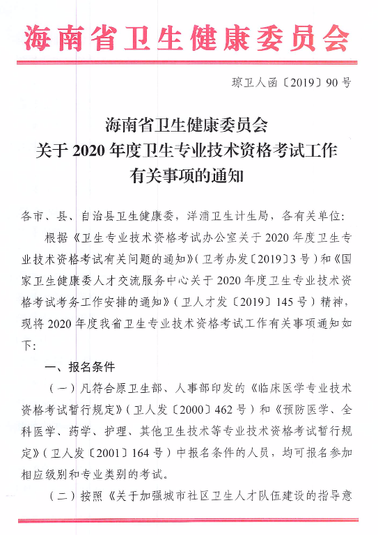 海南省三亞2020衛(wèi)生專業(yè)技術(shù)資格考試有關(guān)事項(xiàng)的通知