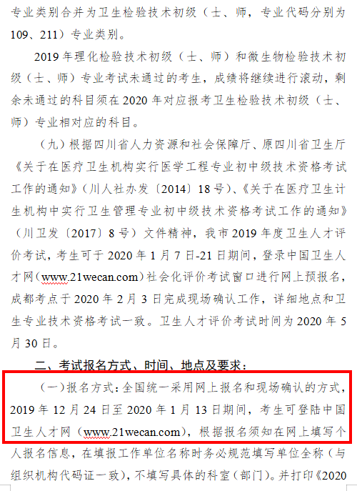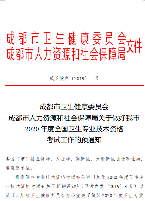 四川省成都市2020年衛(wèi)生資格考試報名的通知已經公布,為了方便各位考生及時了解,小編整理如下: