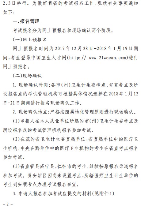 安順市2018年衛(wèi)生專業(yè)技術(shù)資格考試各報(bào)名點(diǎn)現(xiàn)場(chǎng)確認(rèn)時(shí)間安排